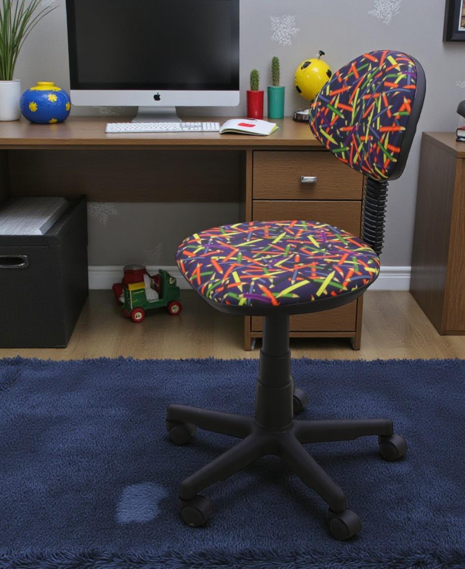 —Кресло Логика (пластик WH,Ткань, KiD'S, №16 (карандаши),О,PL 540, б/подл, ролик белый)
