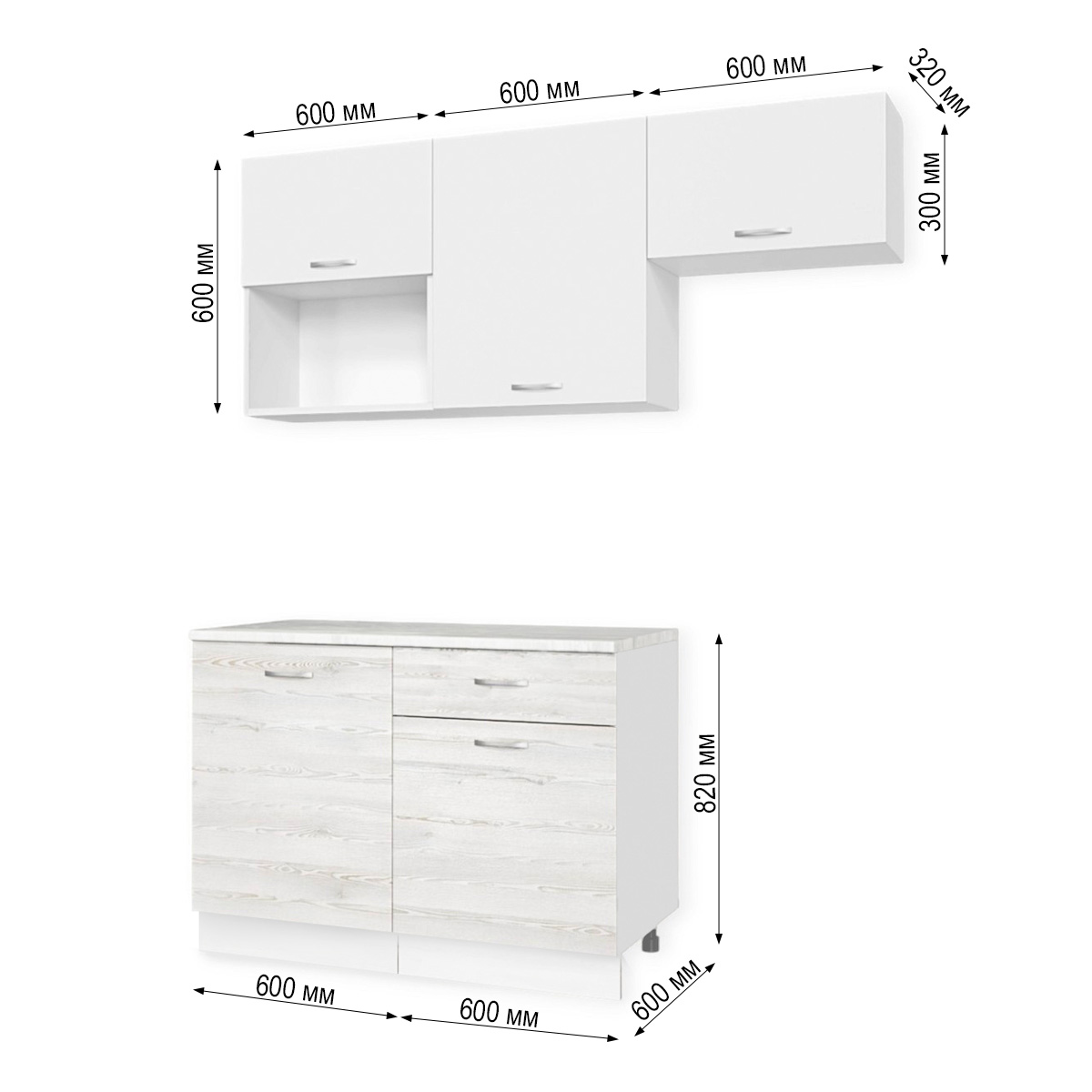 —Кухня ТЕМПО №3 Белый/Сосна Лофт/Белый жемчуг/Олива (без мойки) 1,2 м
