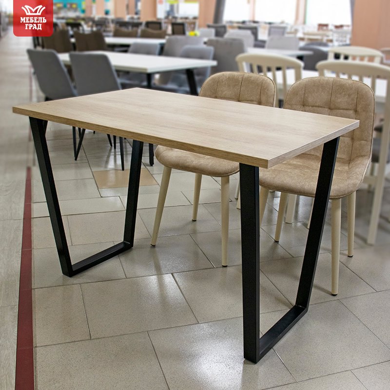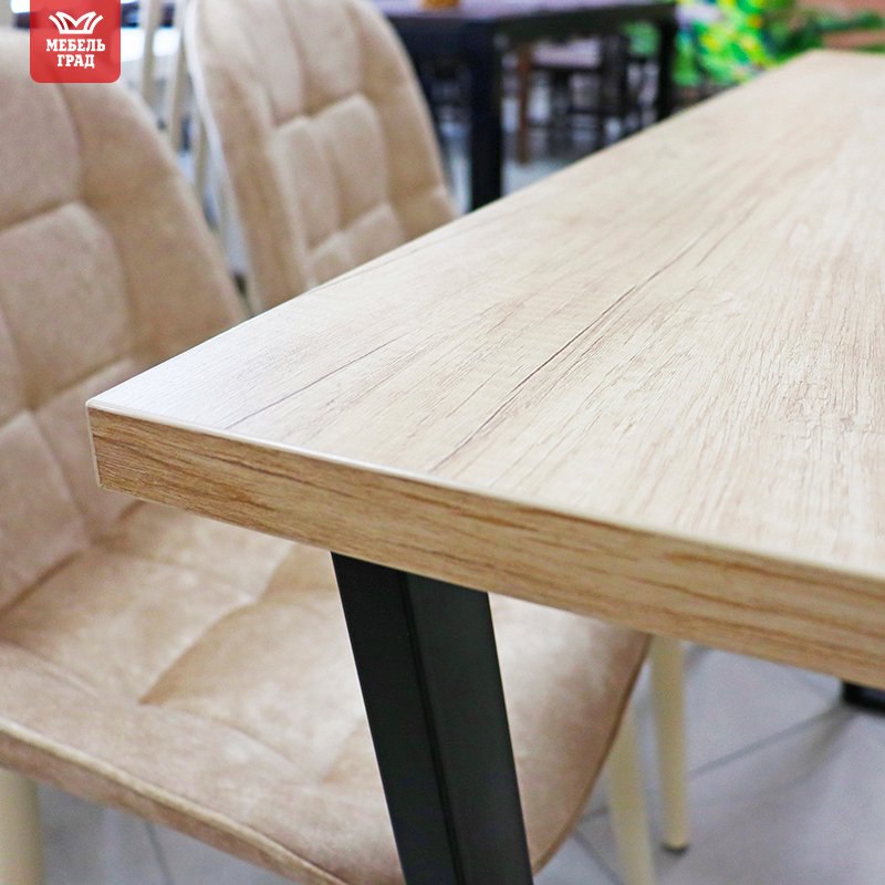 Стильный дизайн впишется в современный интерьер кухни. Надежные опоры лофт в форме трапеция и прочная текстурированная столешница толщиной 25 мм поможет с легкостью разместить до 6-ти персон.