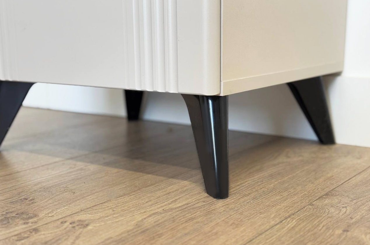 · Подойдет к любому интерьеру: Нежный бежевый цвет и элегантный контраст с черными ножками делают тумбу стильным акцентом в любом интерьере.